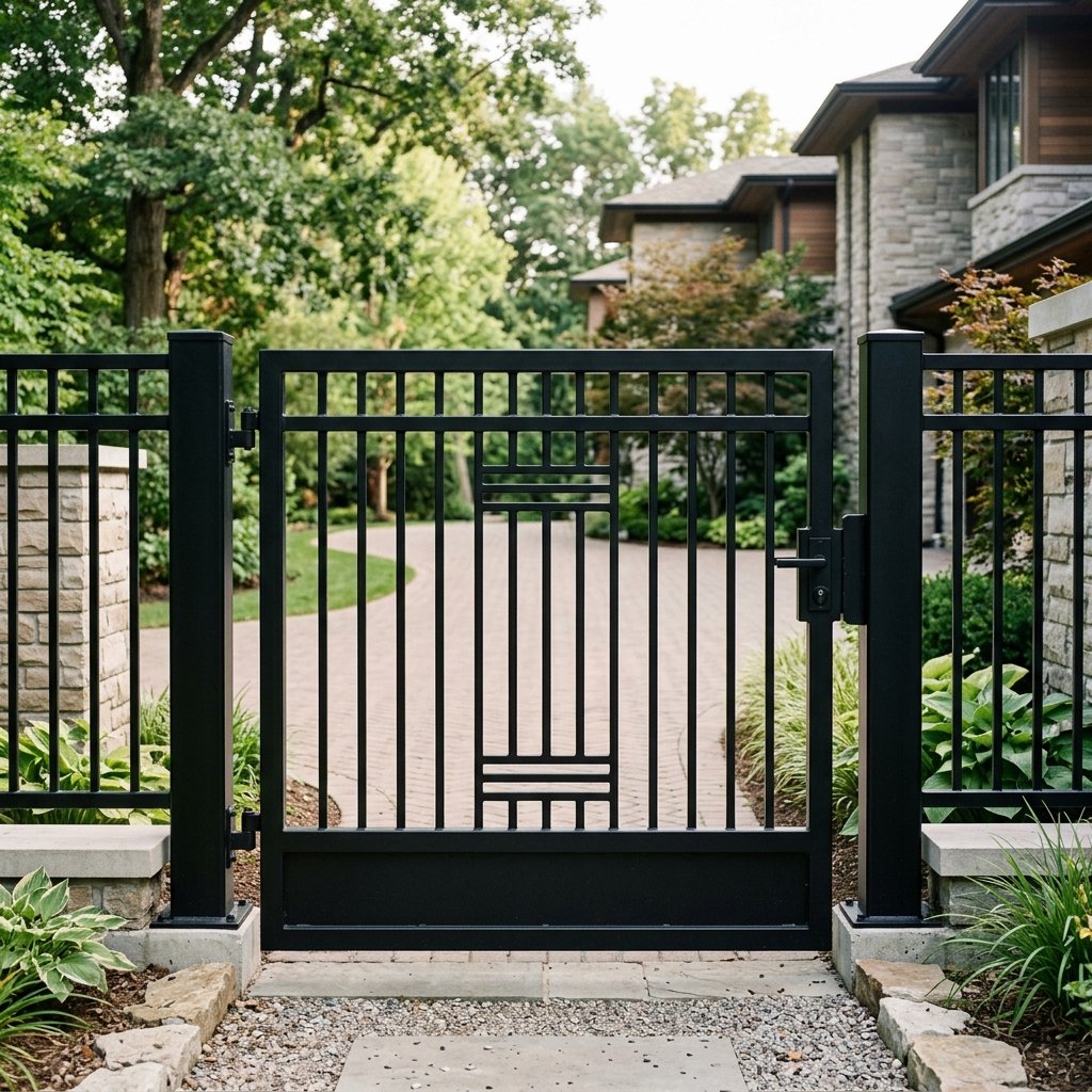 Perpaduan material besi galvanis anti karat dengan aksen kayu GRC untuk pagar yang aman namun artistik.